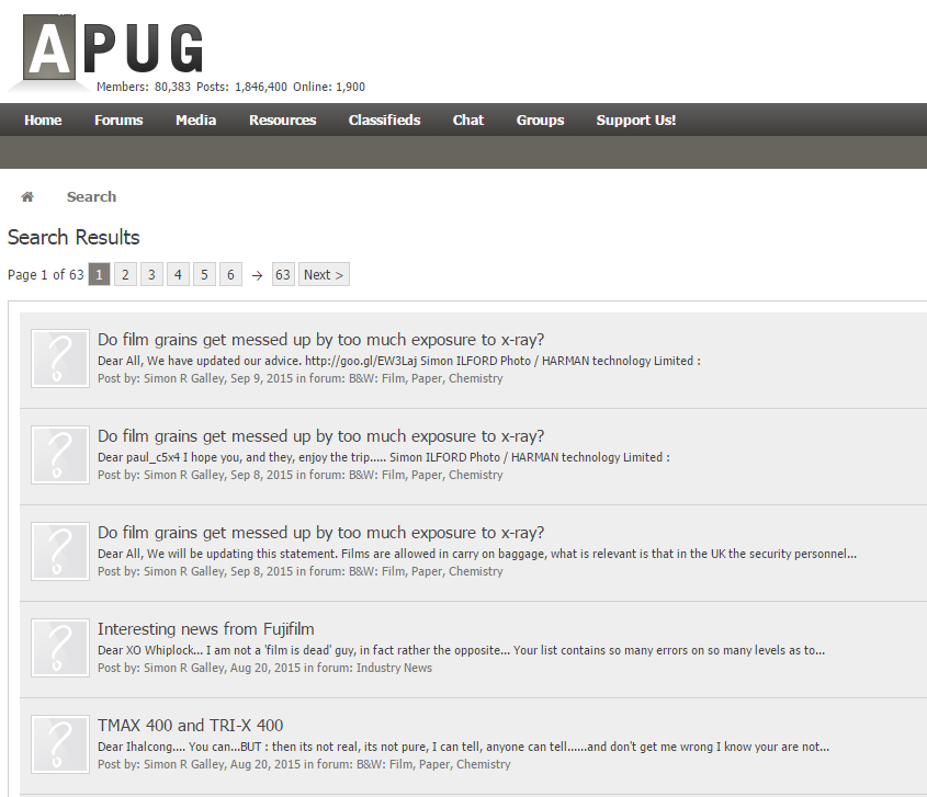 Those are all of his threads, and if you click on his name you can find his profile page. It still mentions he's with Ilford, so that part must not have been updated. Unless he still works for them in a different capacity...
