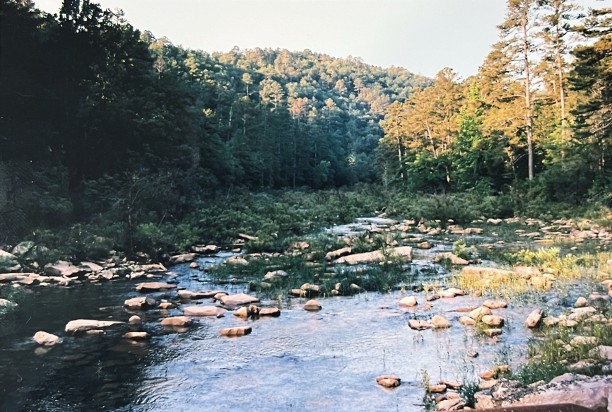 Look at a scene as it really is, and not at the objects as you think you recognize them. Your photo above: try not to look at a stream, the rocks in it, the trees in the background. Notice a patch of dark greens on the left, an area of cyan hues in the center, vibrant yellows and oranges to the right. The bottom half consists of pale blues and magentas, with flashes of yellow. Forget about objects and their names. Look at things like shape, value (dark/light), color, spatial relationships. And then decide where you want to take them; what you want to emphasize, shift in a certain direction, etc. Digital space is vastly more flexible in this sense than optical printing, but the latter certainly also offers certain possibilities for playing around (it just takes more time, more effort, more experience in getting anything done).