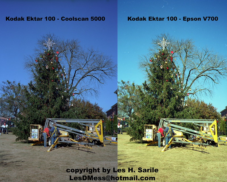 I've shot a lot of Kodak Ektar 100 and depending on the scanner/software used, it is possible to get very aberrant results. This one from the same frame of Kodak Ektar 100 scanned in full auto modes with the Coolscan and Epson with the latter showing excessive yellow.
