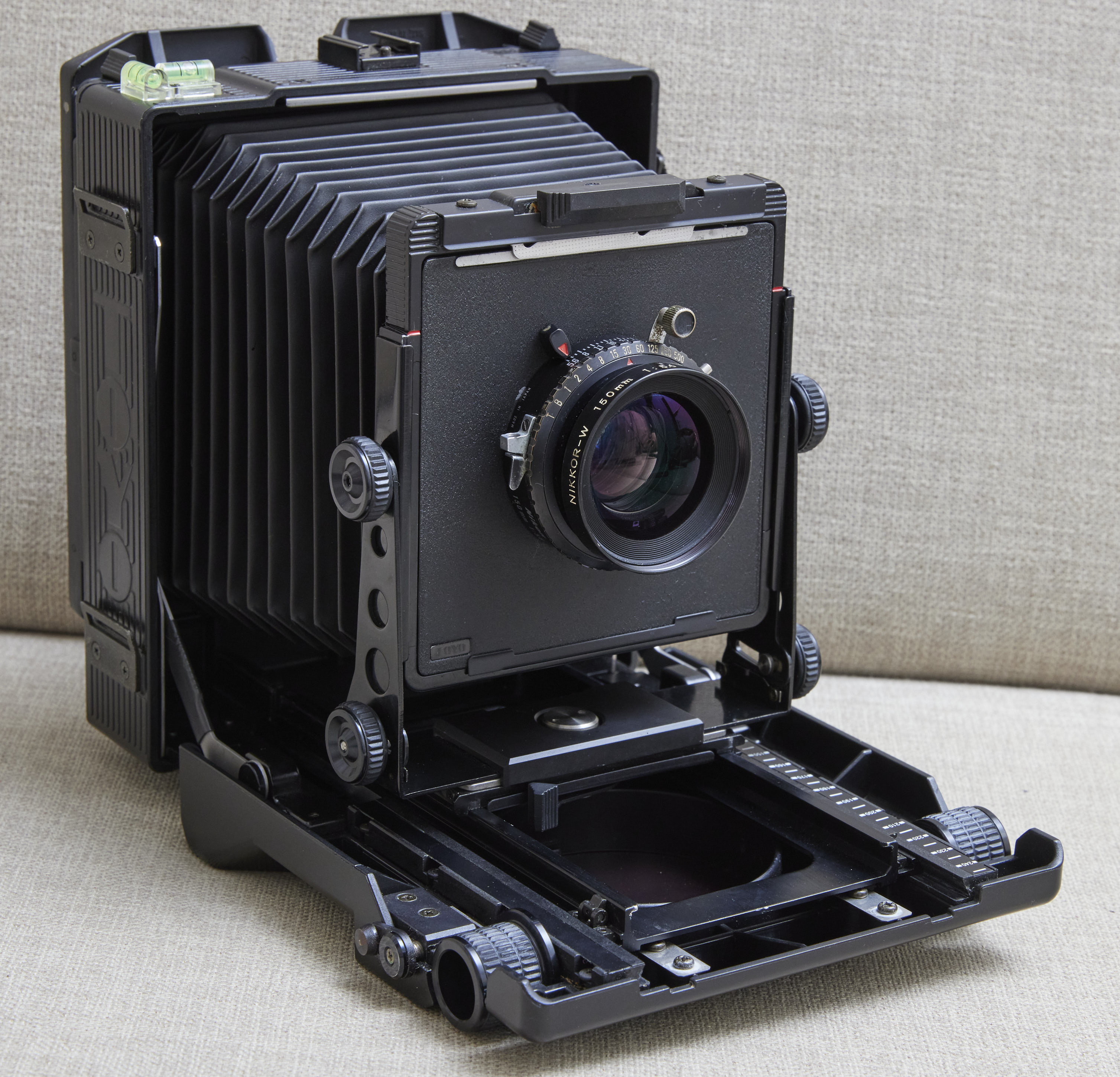 Toyo 45 CF folding camera with Nikkor-W 150mm. It was my second or spare camera. Camera in very good condition, no cracks (see photos), bellow perfect, all is working well.
