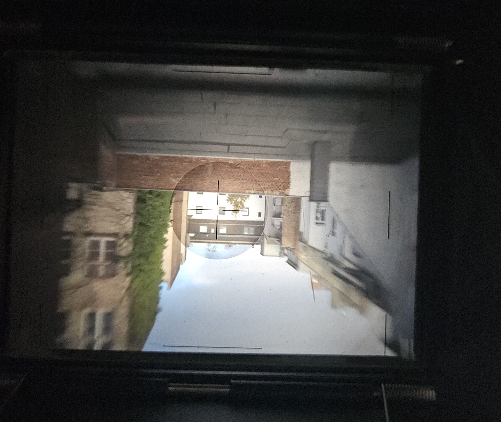 The high loss of sharpness towards the edges is obviously not dependent on the Fresnel lens. This effect can also be seen when only the focusing screen is used.