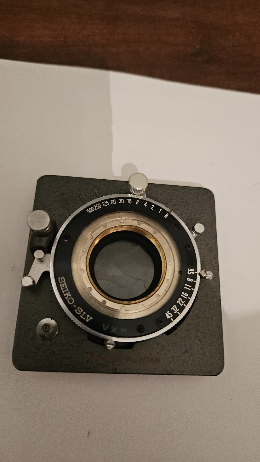Here is what the shutter looks like sans front plate, speed cam and cocking lever. You can see the preview lever on the right.