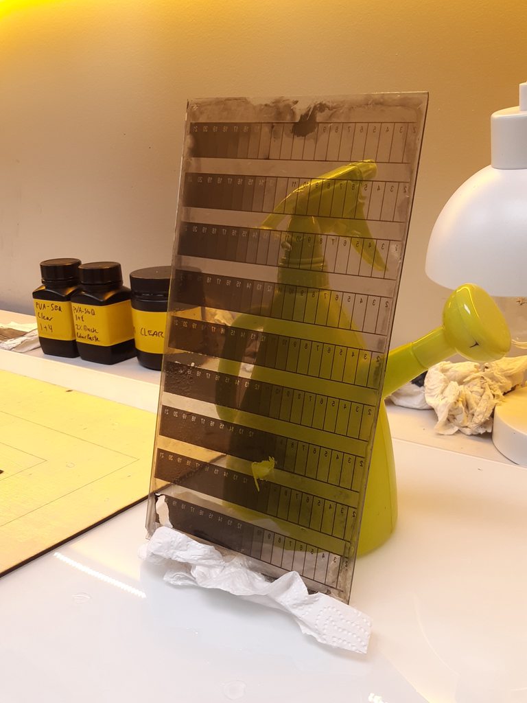 The nice thing about glass as a substrate is that I can scrub the PVA off and use it again during testing. My second attempt went way better than the first, true to the scientific process I changed several variables at once so I have no idea on the individual impact of each lol: