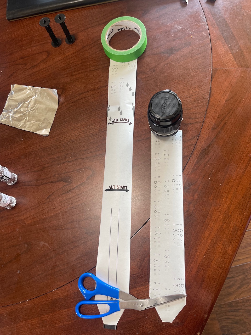 There are a few more things we need to prepare before we can roll the film. We need a way to measure the film length, a way to seal the film before and after exposure, and a wrapper to protect the roll from light if you aren't going to shoot it for a while.