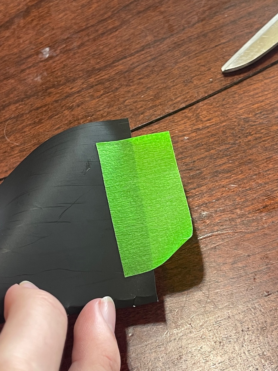 The tape is attached to the trailer simply by putting it on the black side of the paper with half the tape off the edge of the paper.
