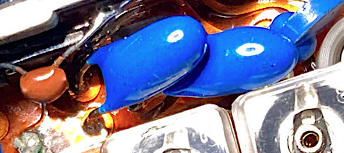 Keep an eye on these guys. They look like tantalum electrolytic capacitors. Given their age, they're virtually guaranteed to leak pretty badly.