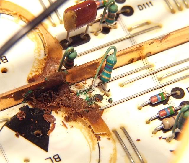 In the process, a solder joint corroded by battery electrolyte on the circuit board came off completely. No way to solder it back on.