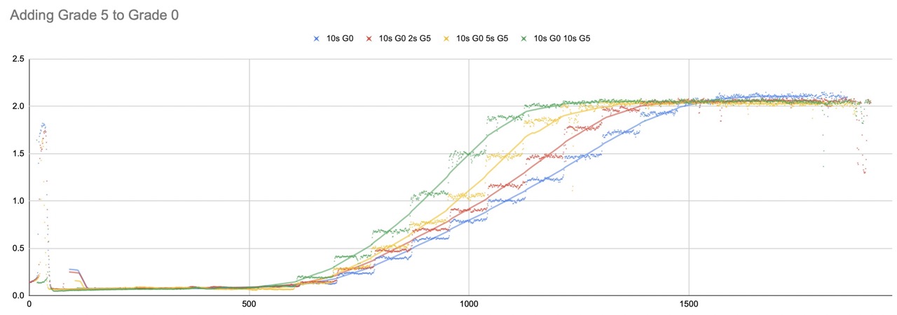 Here's the opposite, starting with Grade 0 then adding more and more Grade 5 on top this time