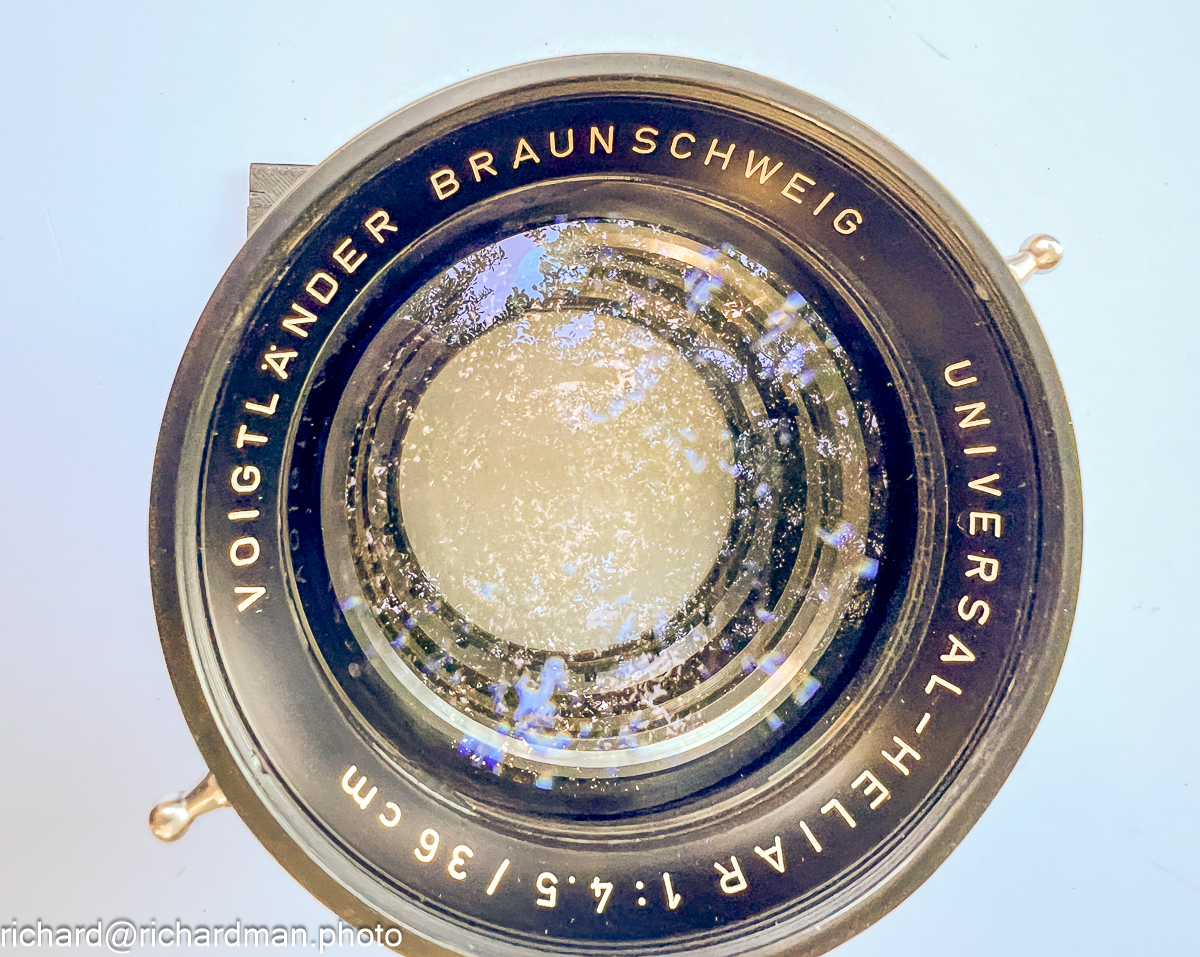 One of the most desirable 8x10 F4.5 soft focus lens. The Heliar is legendary in its sharpness but the Universal Heliar adds the ability to control soft focus amount. This lens is over 4 lbs! NO defects on glass. Comes with a 3D printed Sinar lensboard which is also an adapter for front mounting on a Sinar Copal 3 shutter. $2100 US shipping included.
