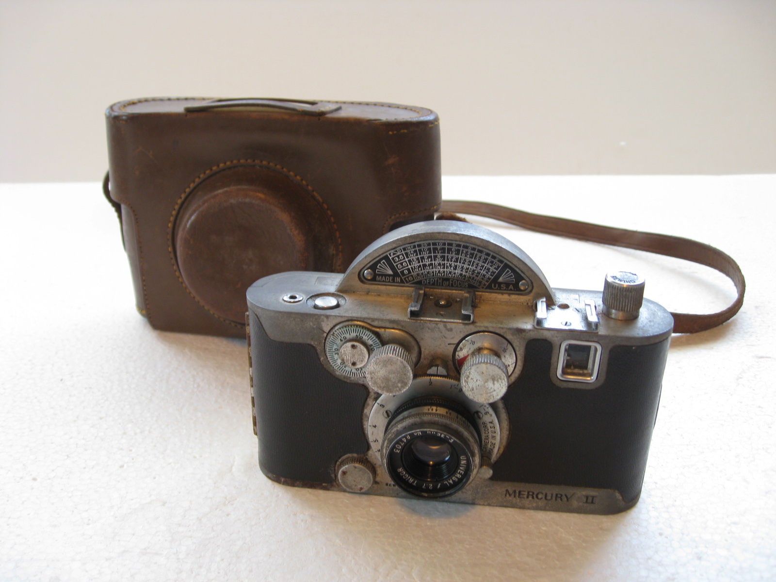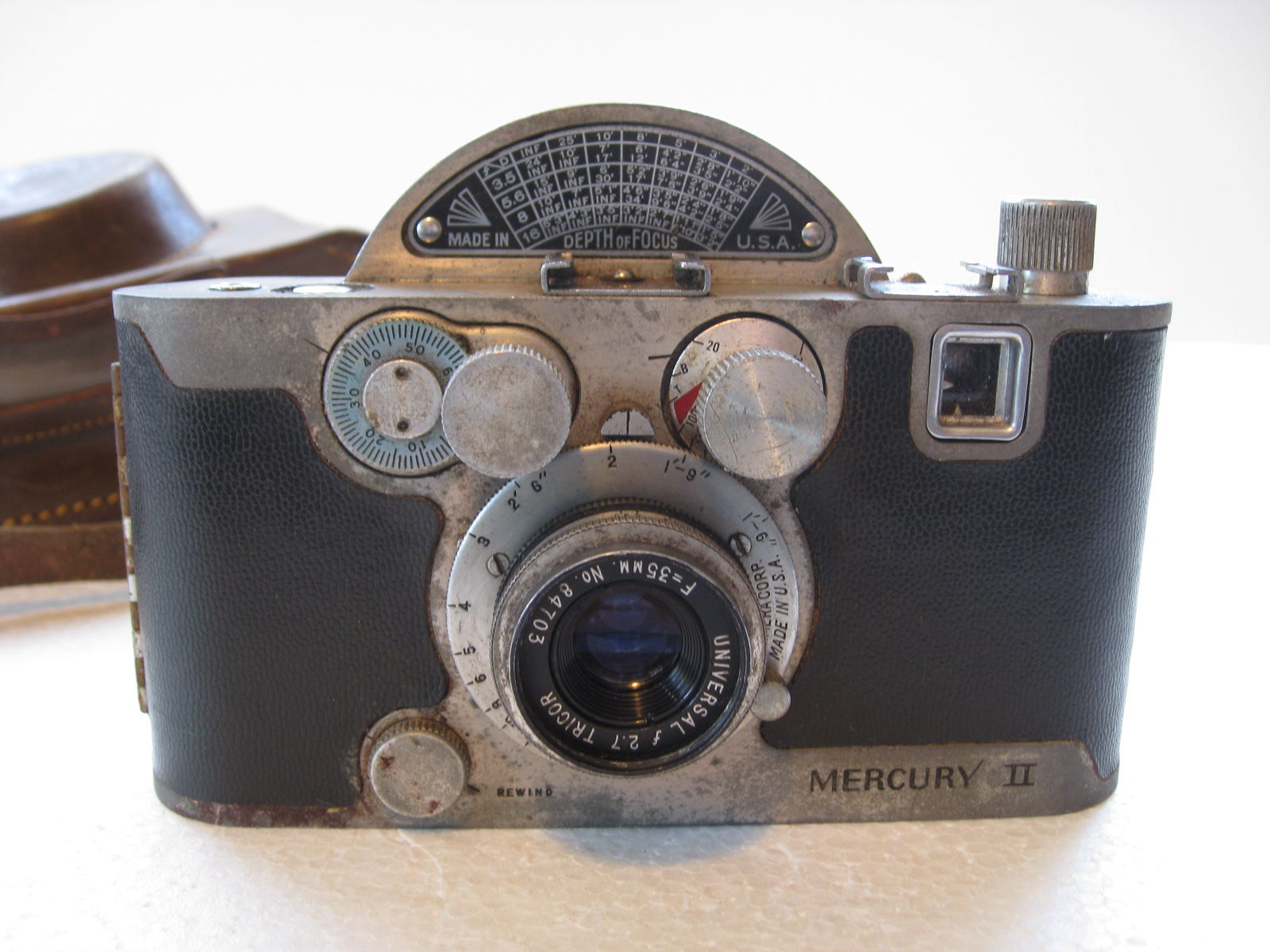 DESCRIPTION: Universal Mercury II CX Camera With Tricor 2.7 35mm Lens, Leather Case.