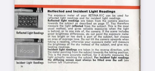 The Kodak Retina III manual, on page 36, is perfectly clear about the proper metering technique.