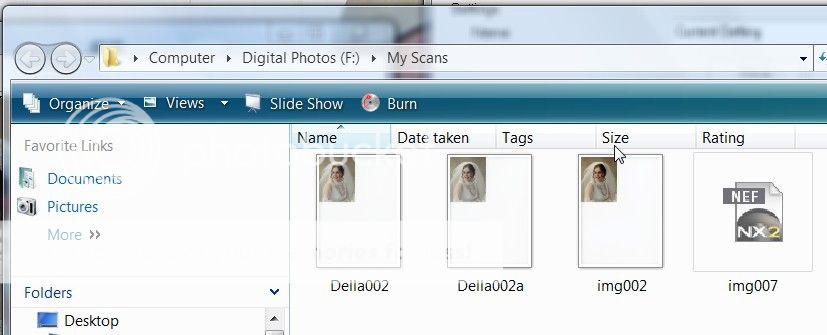 I just happened to realize with scanned files being that large I may have to go to a larger HDD. I have two installed in the computer, one for my OS and another for digital photos. It's large enough for what I've been doing but with the advent of the scanner and sending scans to that same drive it will eat up a good bit of space.