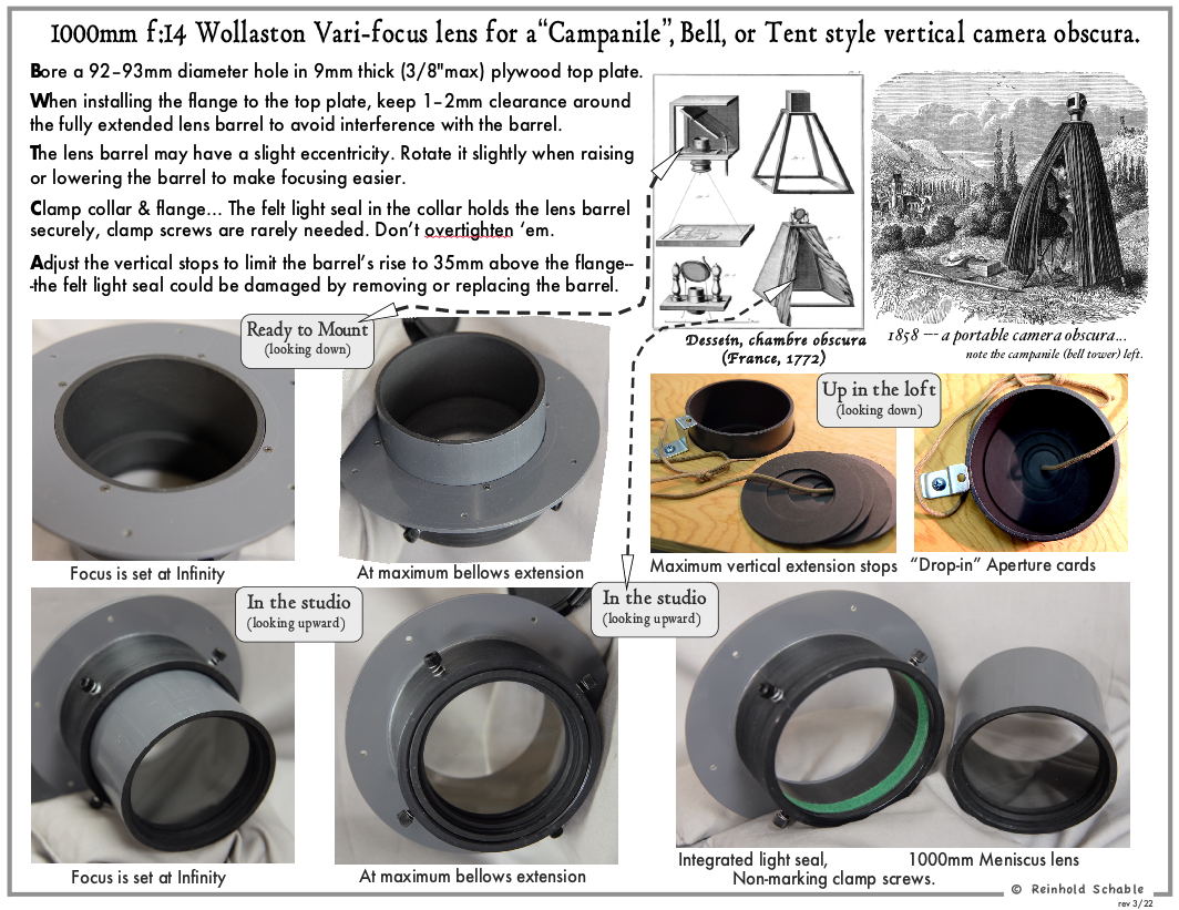 Vari-focus Camera Obscura Lens for vertical type “bell” shape dark tents.