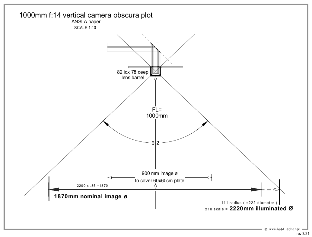 1000mm f:14 lens. Nominal image: 1870mm in a 92 degree 2220mm illuminated circle.