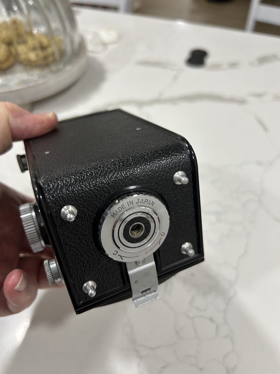 The camera is in excellent condition in all respects with the following to note. The shutter speeds all sound correct, although 1 sec might be closer to 1.5 sec (it's hard to tell really - certainly close to 1 sec). The controls work normally. The taking lens is clean and clear, but has micro-coating scratches on the front element. I judge these as not being numerous enough to have noticeable impact on images, but I mention them for the sake of the perfectionists out there. There is some evident wear on the metal winding crank, but it is purely cosmetic and might polish out if you have some time and some metal polish. The viewing screen has acceptable brightness and nothing that will impede use (every vintage TLR could use at least a cleaning or better, an upgrade of their viewing screens).