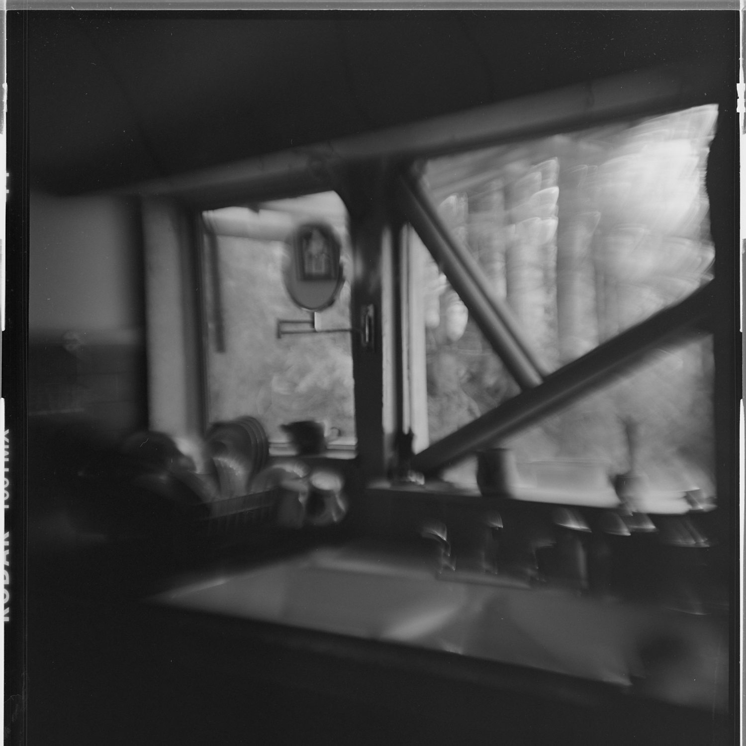 Got it lowered down in there hanging off a strip of masking tape with a little prodding via a chopstick. I have ground glass from my Rollei floating around somewhere but didn't see it yesterday so I went ahead and loaded up a test roll of expired TMax. Definitely going to be doing a few critical focus tests but otherwise just curious as to how things shook out!