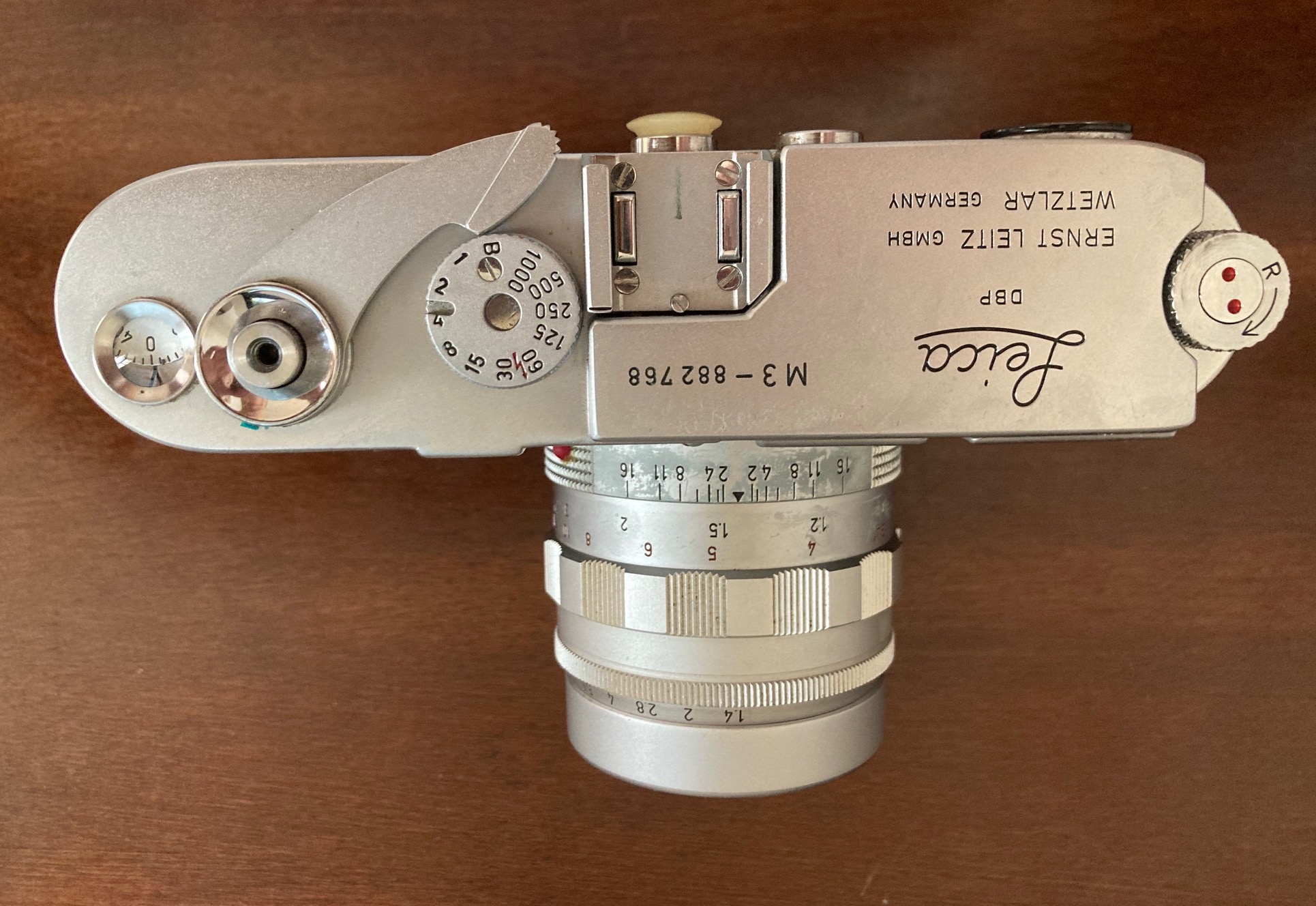 Vintage Leica Wetzler M-3 DBP Wetzler Made in Germany with Leitz Wetzlar 50 mm f/1.4- f/16 lens, $1,800