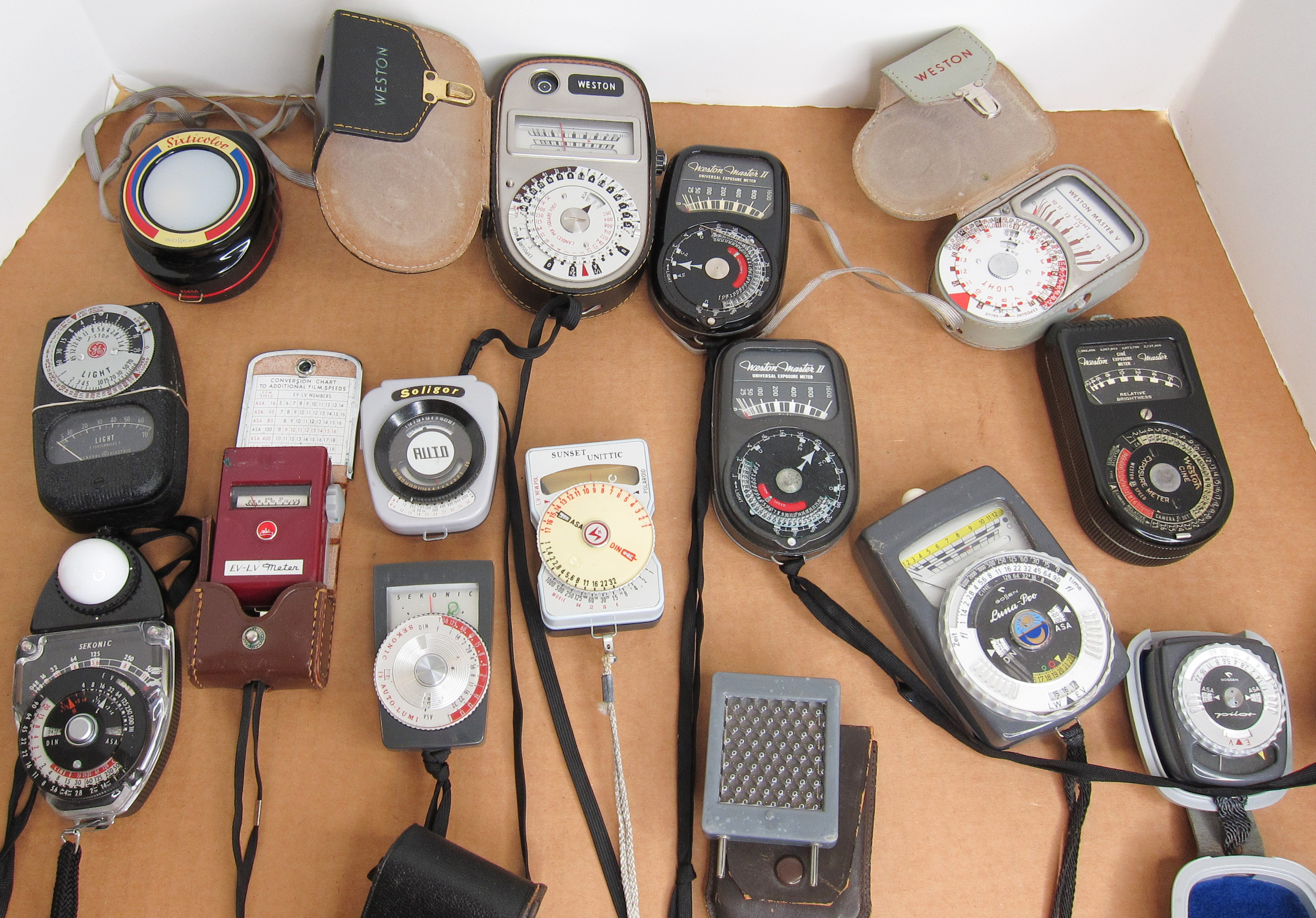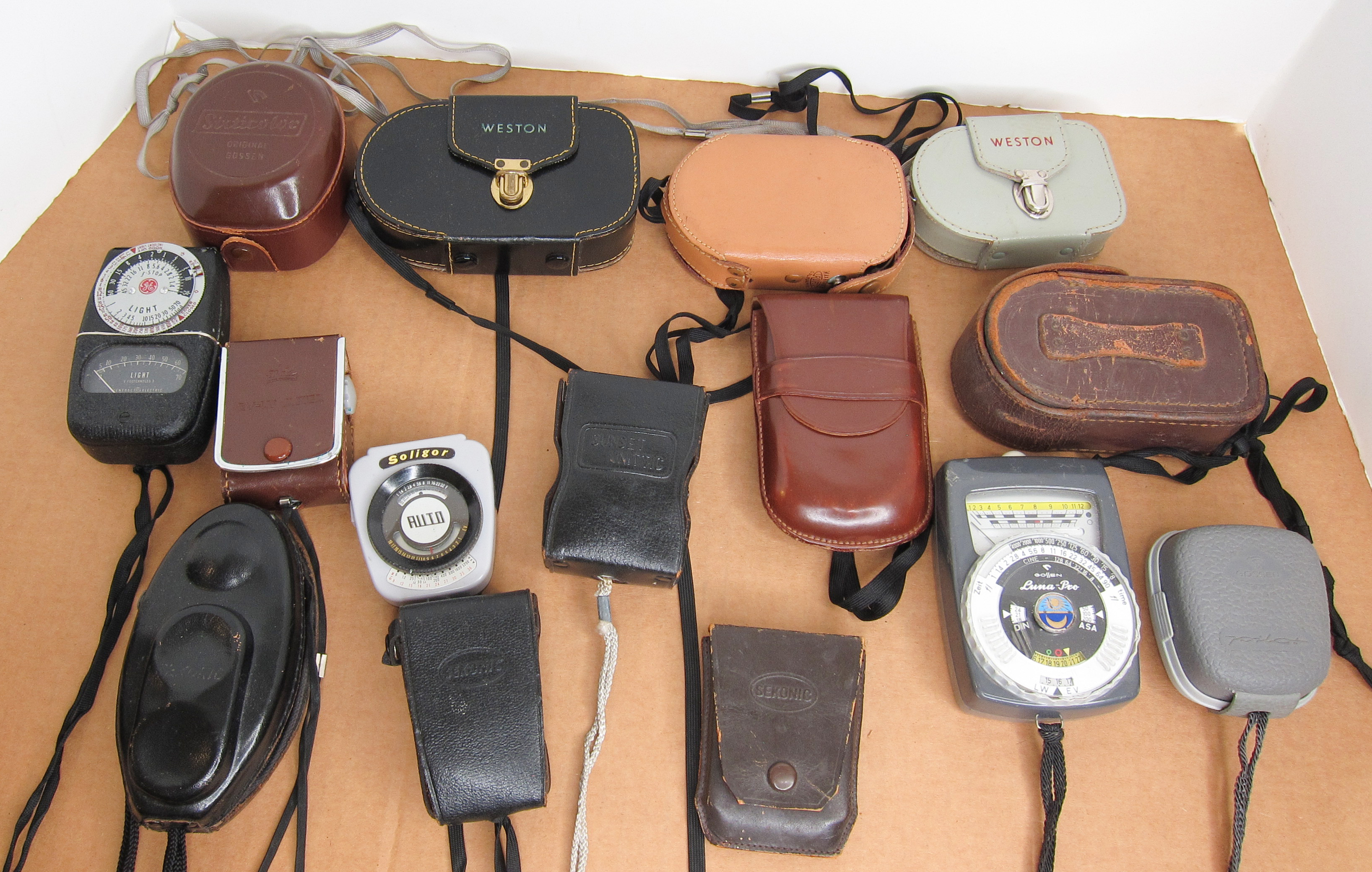 Weston Meters, Sekonic, Gossen etc. as pictured. Don't know if any work.