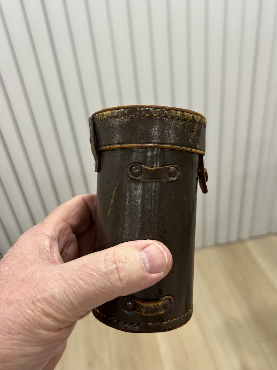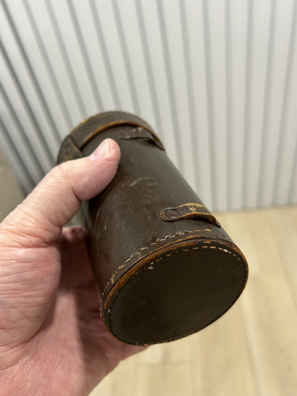 I am selling a vintage Nikon Kogaku leather lens case. The case is well worn, but intact. The quality still shows despite its age. This is obviously very early Nikon product. I'm not sure what lens this was made to fit, but the dimension are about 5.25" long, but 2.75" wide (outside measurements). This was probably made to fit one of their longer rangefinder lenses, or perhaps an early F mount SLR lens. It's not something I do not need at the moment, but maybe you do! Shipping would cost $5 to $7 dollars or so depending on where you are.