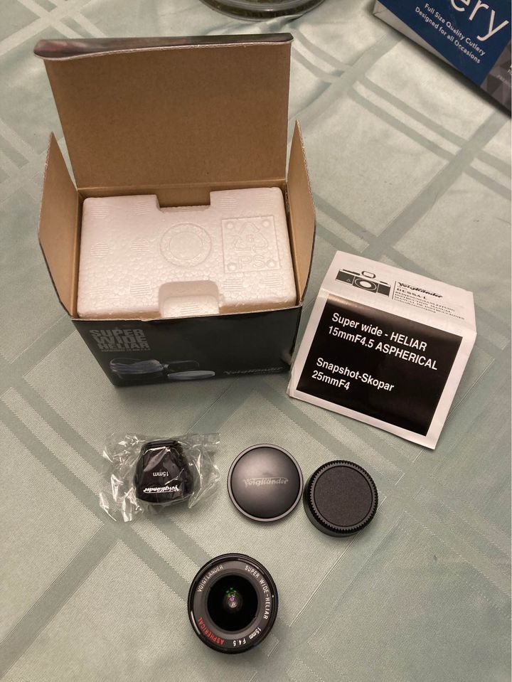 Voigtlander Super-Wide Heliar 15mm 4.5 lens in Leica Thread Mount. Includes matching finder that has never been opened. All boxed with manual. Lens is almost like new. NO ISSUES AT ALL. $ 349 plus shipping. I ship worldwide to Paypal addresses