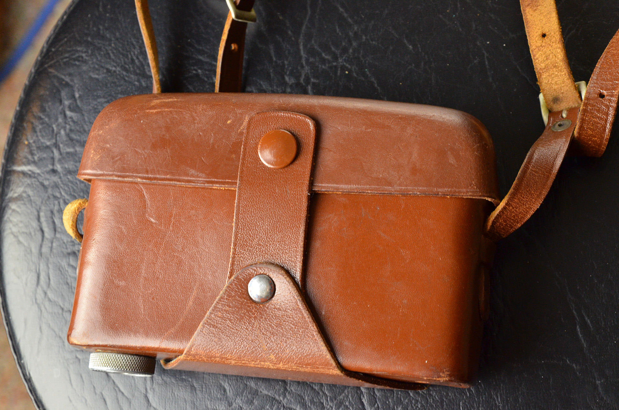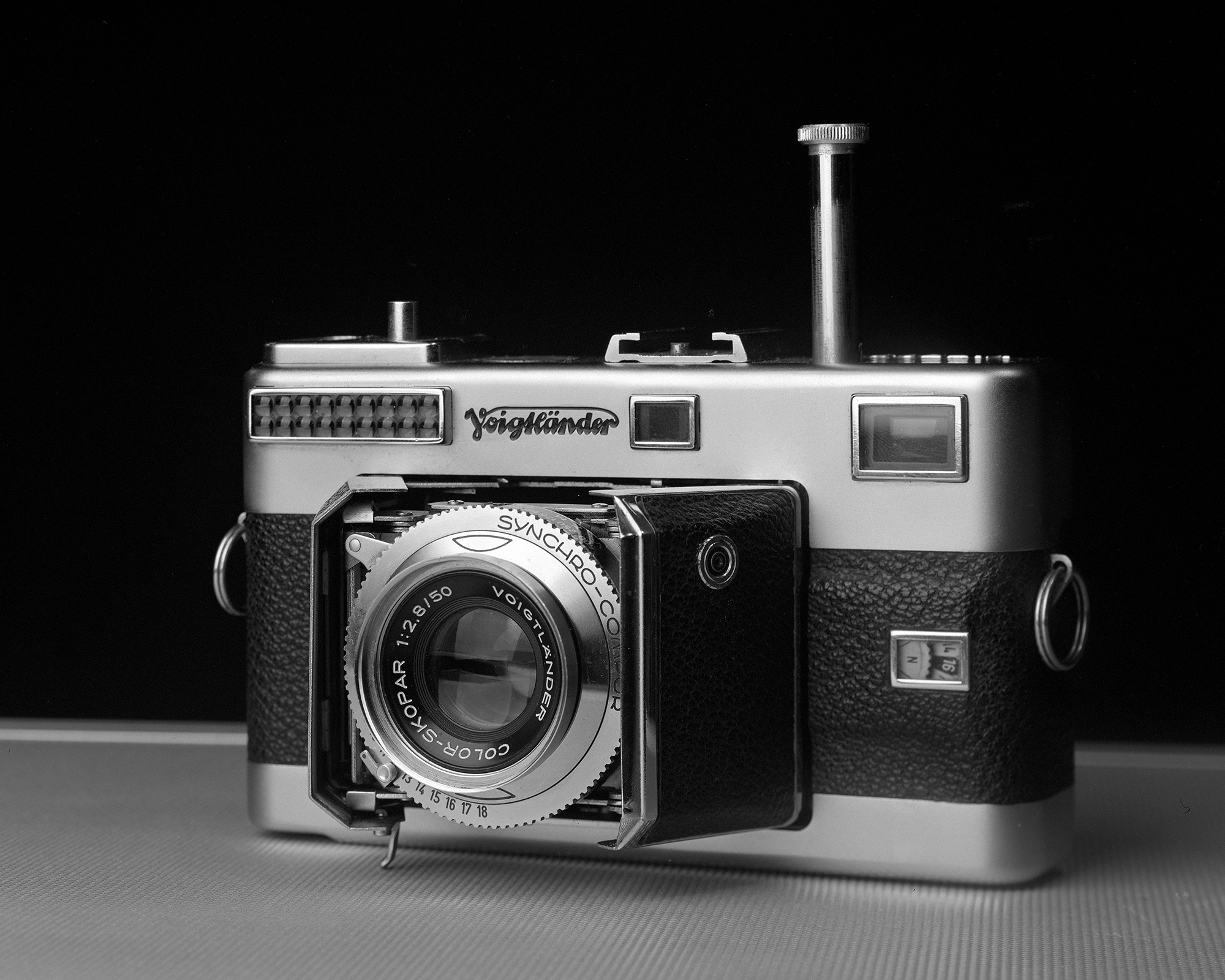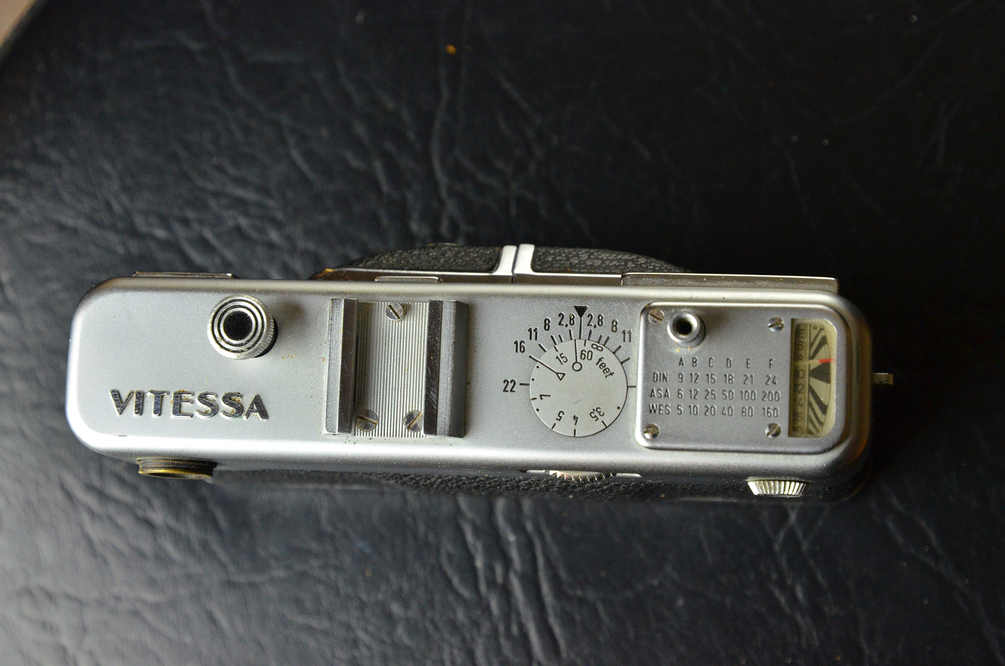 Good condition Vitessa with case. The Color-Skopar 50mm f2.8 is the middle of the line lens (there is an Ultron f2 and a Skopar f3.5 in the line). The camera is clean and functions well. All speeds work and self timer. Lens clean. Viewfinder bright and patch contrasty and accurate. The light meter works. The only issue with the camera is that the plunger needs to be pushed down gently when closing the camera in order for it to stay down. No issue when advancing film. Also, the red index mark for the shutter speeds is rubbing off, but I know it aligns with the "S" in synchro-compur printed on the facing. Case in good condition.