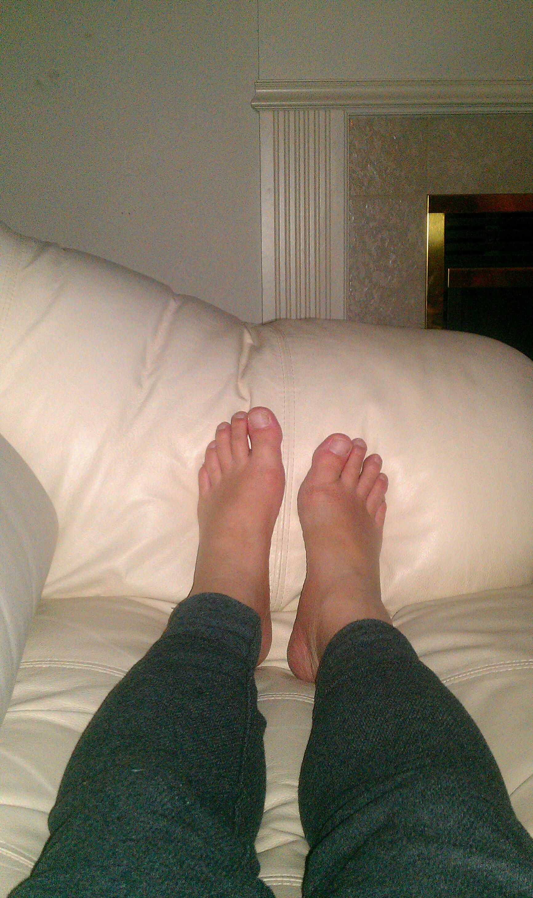 No socks, no tennis shoes. Temperature is down to 62F (17C) tonight; had to put on sweats.