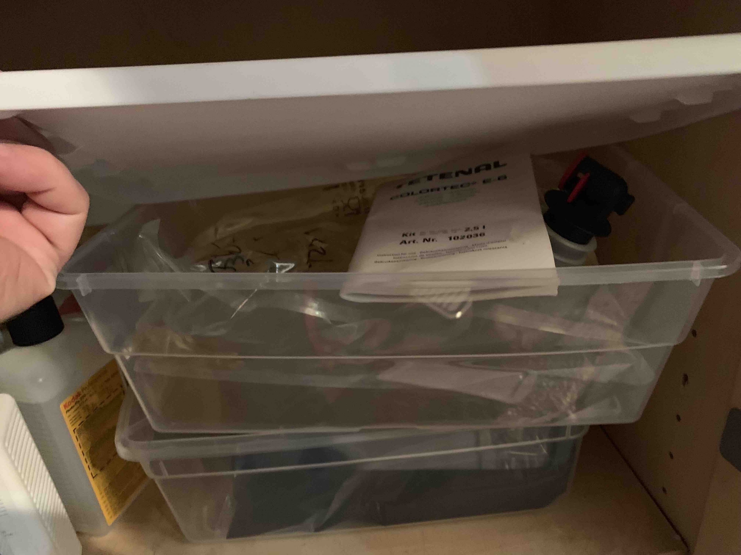 I use empty wine bags that can be refilled. 1 to store my replenished working chems and then another for stock to use for replenishment. so far, over a year in no issues. easy to refill, easy to keep the air out and with the spout, easy to replenish. 6 bags with 1.6 liters for working and 6 3l bags for fresh chems. once every 6 months or so i have to refill the 3 liter bags
