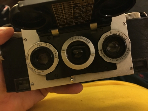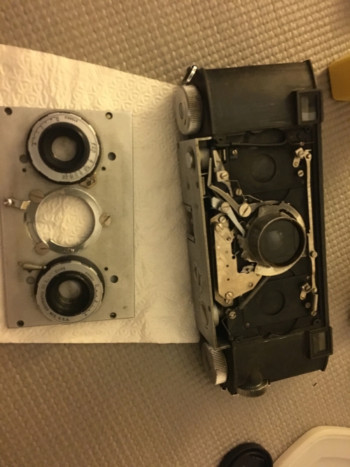 Repaired a very rough stereo realist 2.8 camera, its shutter was stuck, shutter cocking lever hanging loose and not winding on, very tight aperture adjustment, partially blocked rangefinder, and only leather on the bottom plate with bare metal around, with a good layer of dirt all around it. This is my very first stereo camera, when I saw it in person I was actually pretty worried that it was a lost cause, it was really the one of roughest and ugliest camera I have ever bought.