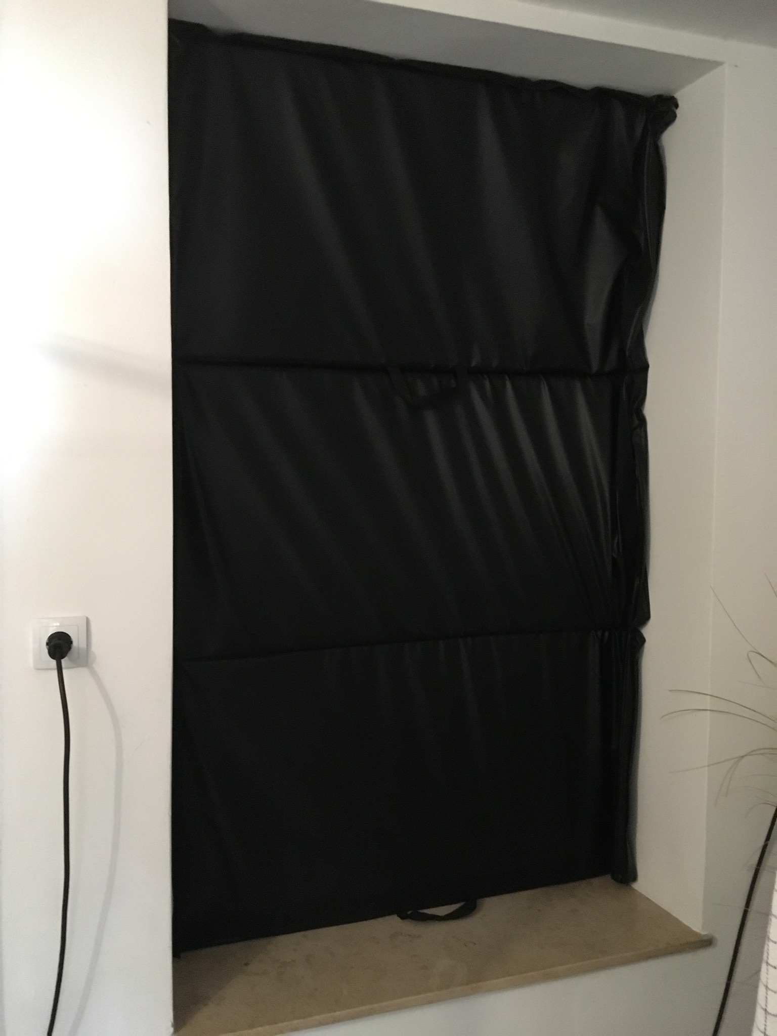 Yesterday I got an exercising mat that I cut to press-fit in the window reveal. Hooked up my darkroom lights temporarily, seems it works out fine. Looking forward for the first print made at home.