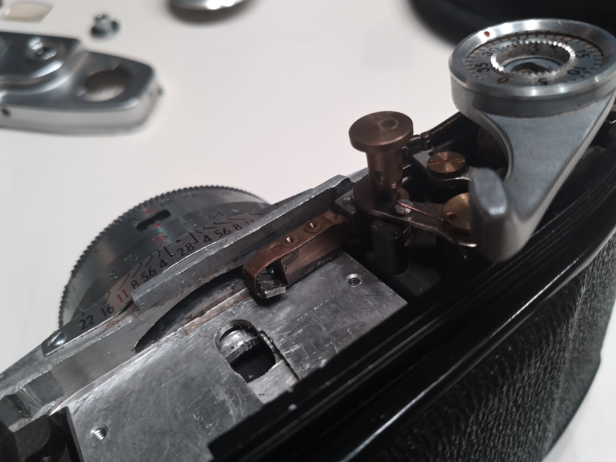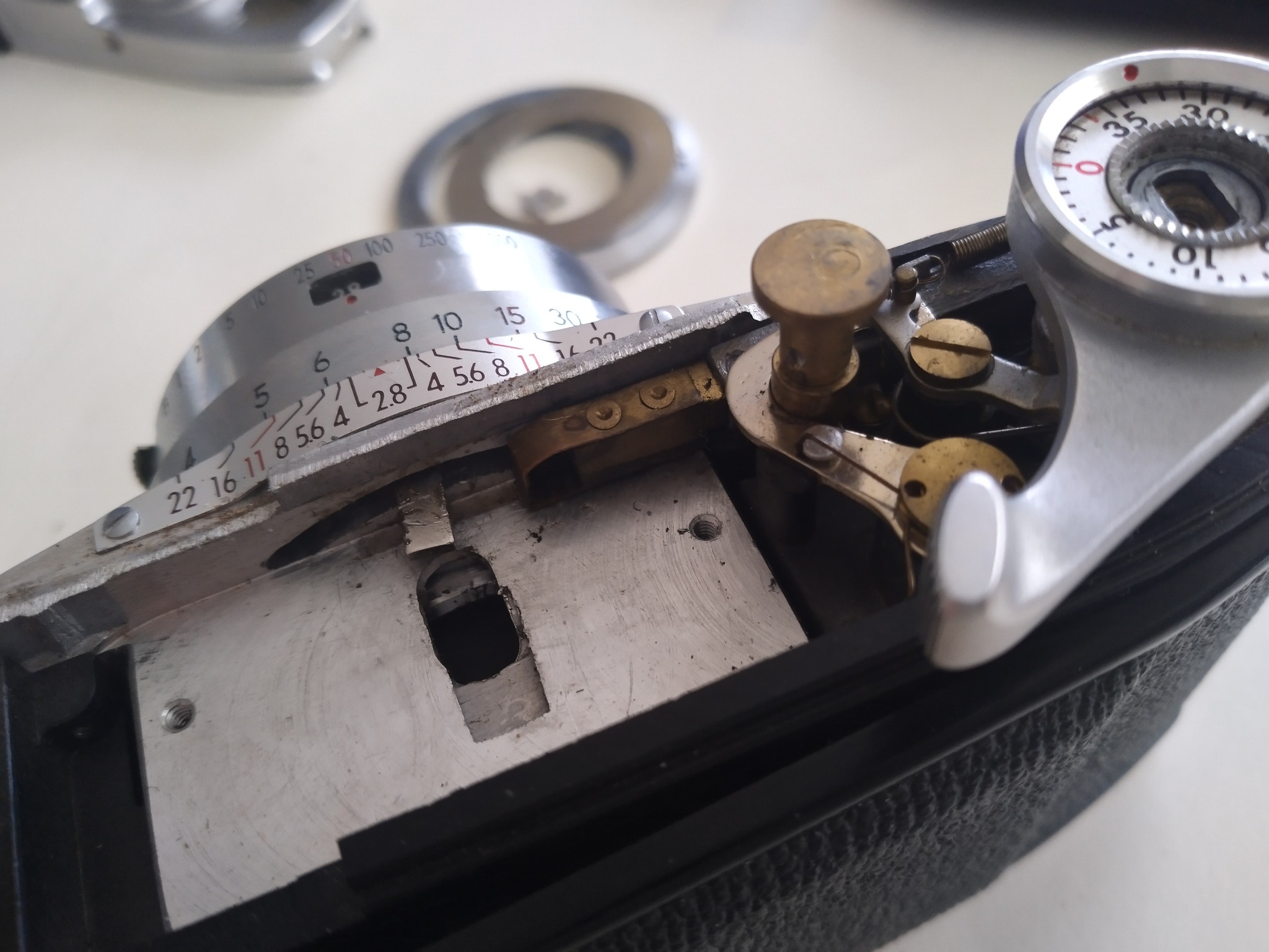 It was given up by a young teen who just stepped into photography a year before pandemic. He kept the lens but left the camera because "it is acting unpleasantly" . He admitted he has opened it once and attempted to follow "advices " from internet but failed. The "analogue weird wire connections" terrifies him so he just put all back for a year and decised to pass it to me , as " fix it or scrap it".