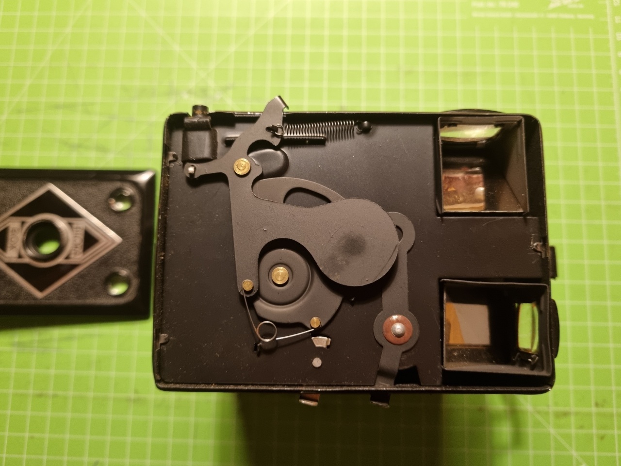 But I couldn't get the new "tooth" properly angled so it would disengage with the underlying cam when required to decouple the shutter/film winding from the spring motor drive.