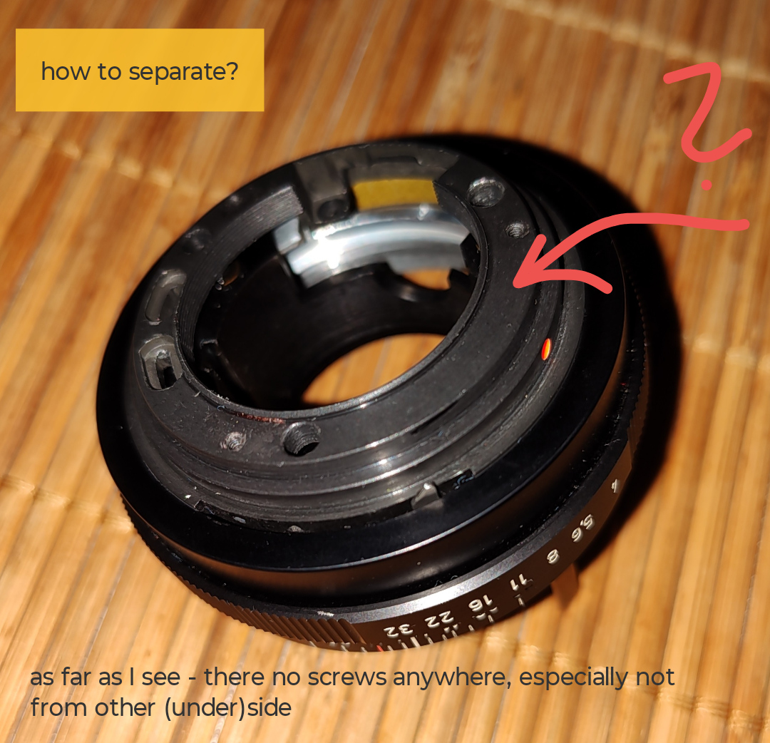 I am new here, I don't know if this is the right thread to ask, but... I am trying to disassamble ZEISS version (Made in West Germany) version of Tele Tessar f4 135mm HFT - QBM mount...