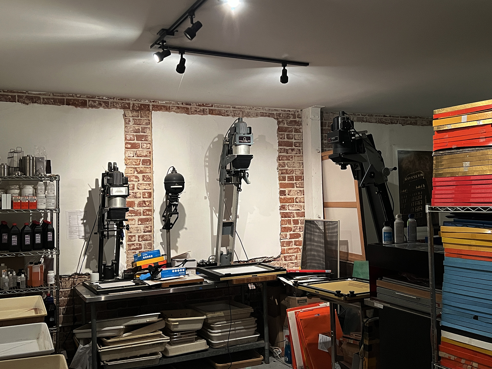 Ha ! There is at least a double amount of trays on the wet sideI counted 25 trays in your darkroom. You're running a serious lab there.