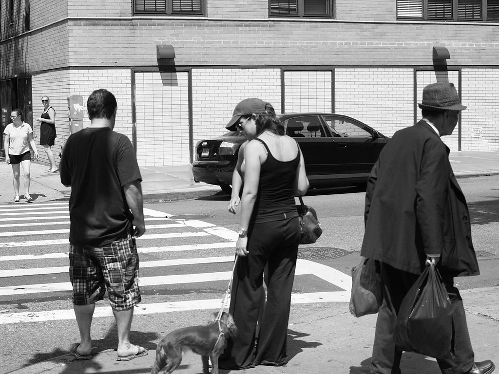 But then you can shoot boring pictures like people just crossing at the intersection. Those don't say much because the people aren't saying much in them.