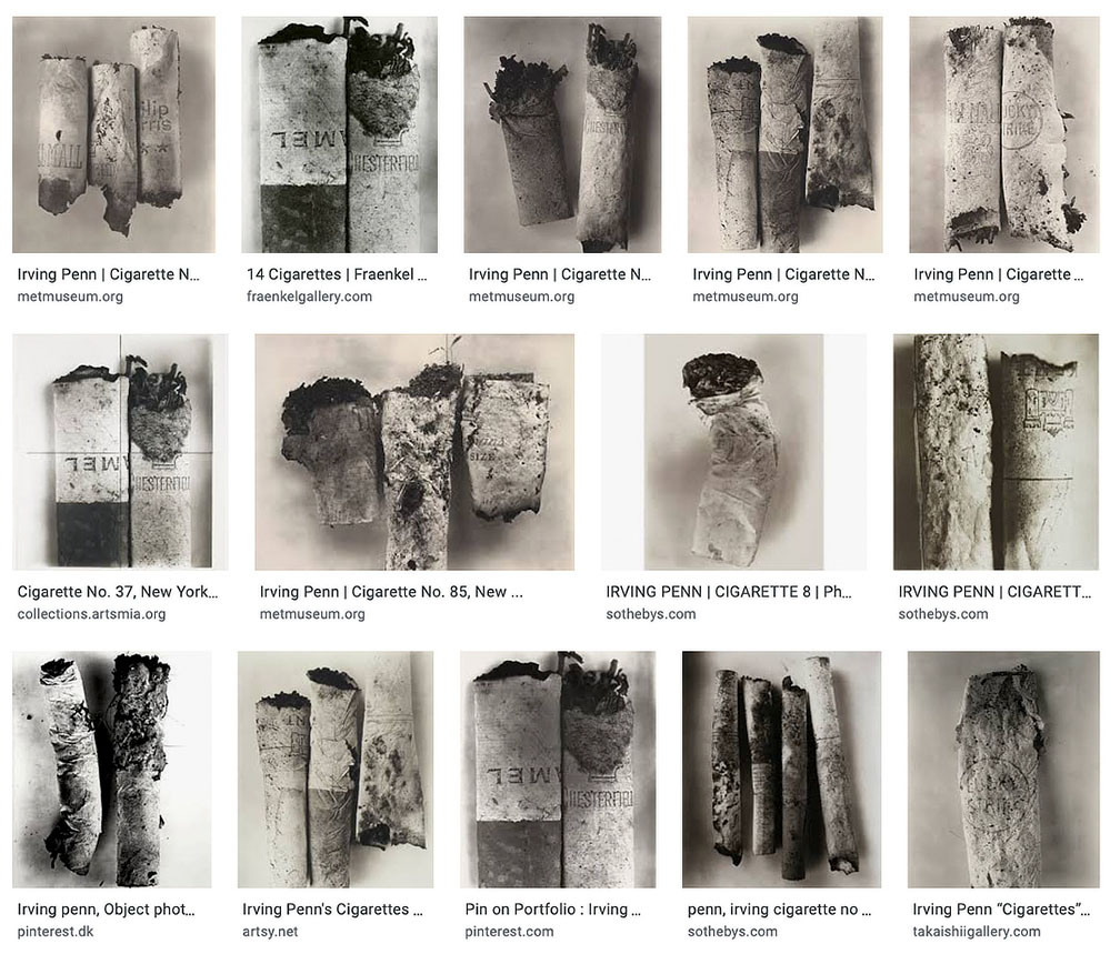 Penn was already part of the discourse, he had written about his own work extensively, including this series where he elevated the lowly cigarette butt to