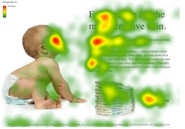 Eye tracking techniques help advertising agencies to explore the impacts in the images, there are two principal tools, one is heat maps: