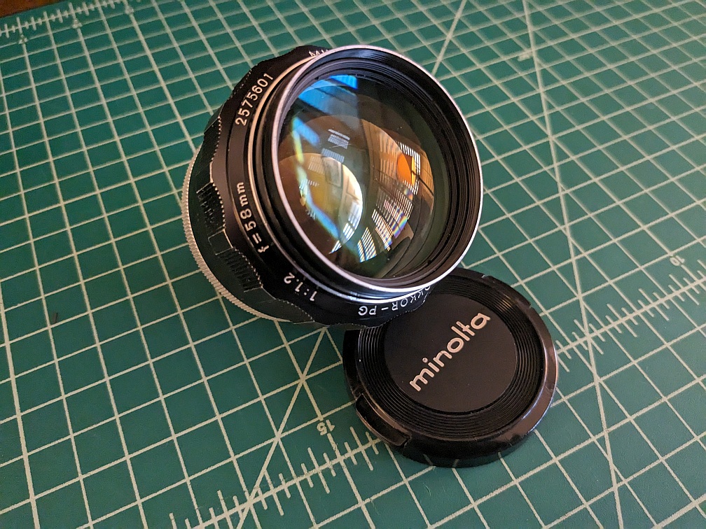 Bought this a few years ago at a flea market - attached to a battered Minolta SRT-101, the MC Rokkor 58mm F1.2 Apparently it is fairly rare, but it wonderful lens. I use it on my mirrorless Z6 and Fuji.