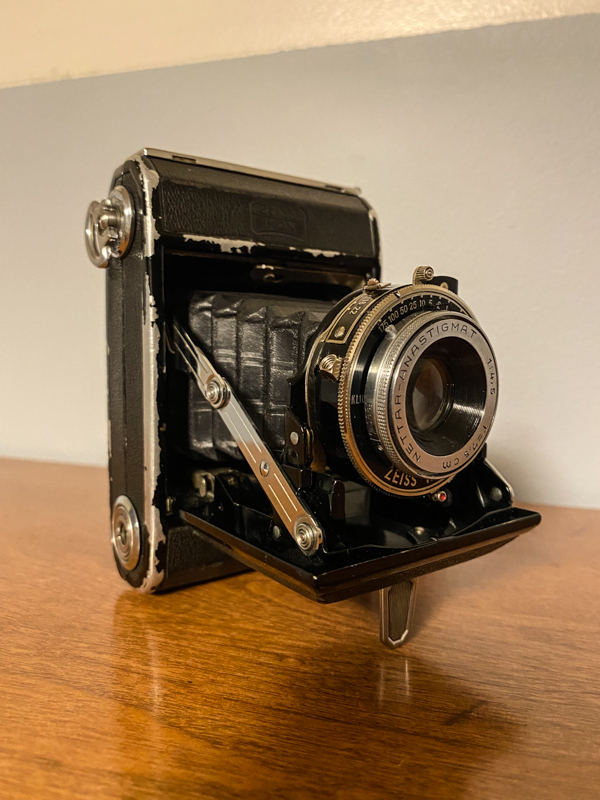 Could you please upload a pic of that ugly camera?Probably this one, because of the amount of paint loss and wear it has. It looks like it's been through a war because it has. My grandfather carried it with him all through World War Two.