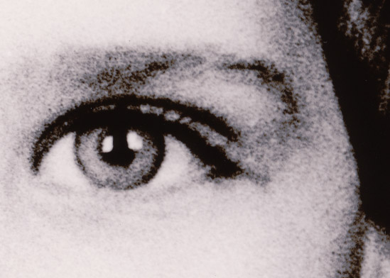 This is a crop from a split toned lith print. You can see the brown color of the selenium toning in the darker areas, and the blue from the gold toning in the lighter areas.