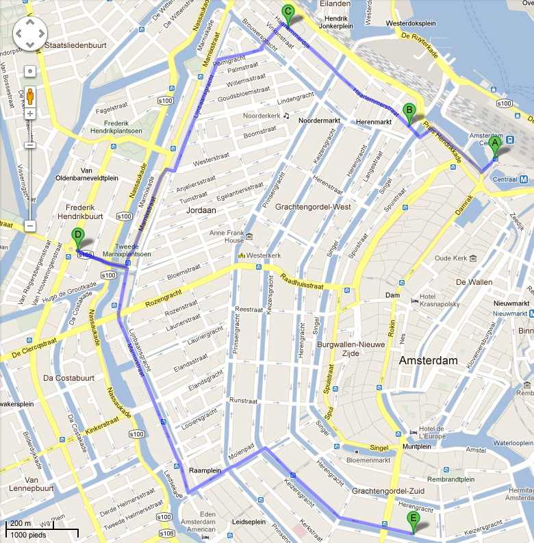 We rented a houseboat on the Prinsengracht in the west end, near the Noordermarkt which was great place to walk around and explore the old archirecture, markets and people. It is an extremely bicycle friendly place, and you may appreciate the value of a pedestarian bike (versus the MTN, et cetera).