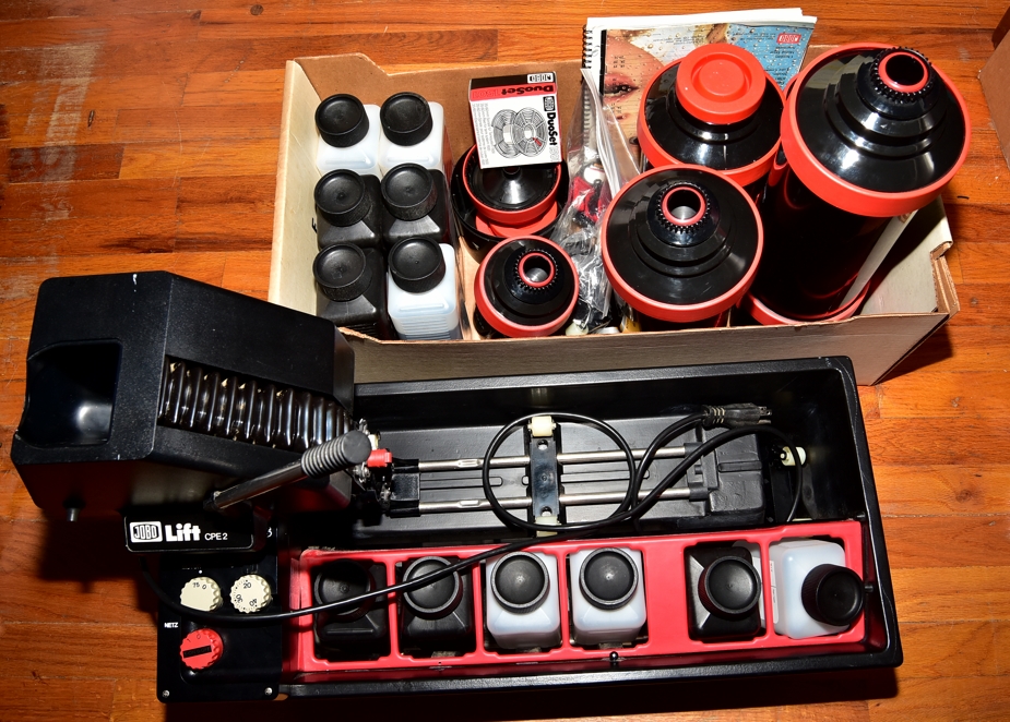 I have one of these and one of the bigger processors, the CPE is perfect for 89% of what I do. The lift is awesome.View attachment 207078 FINALLY...20 years ago I wanted one of these and at long last I have acquired one! Practically brand new and a bunch of extras such as 6 tanks, a 1520, 1540, 2523, 2551, 2553 and a 2840. 11 reels from 35mm to 4x5. 6-1000mL and 6-600mL bottles and some other goodies.
