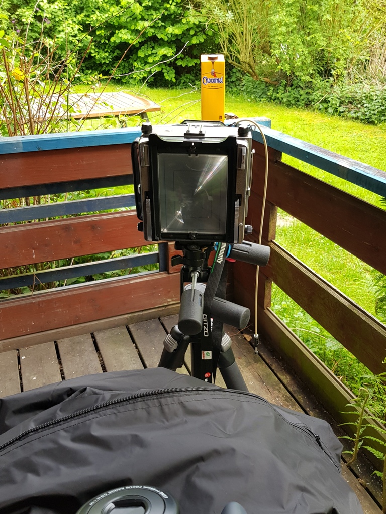 This arrived here from Germany within the last couple of weeks. The lens is a Schneider 270mm Tele Arton and the 4x5/9x12 sliding roll back makes this fast to use. I am going to use 4x5 Graphmatics in it for now.