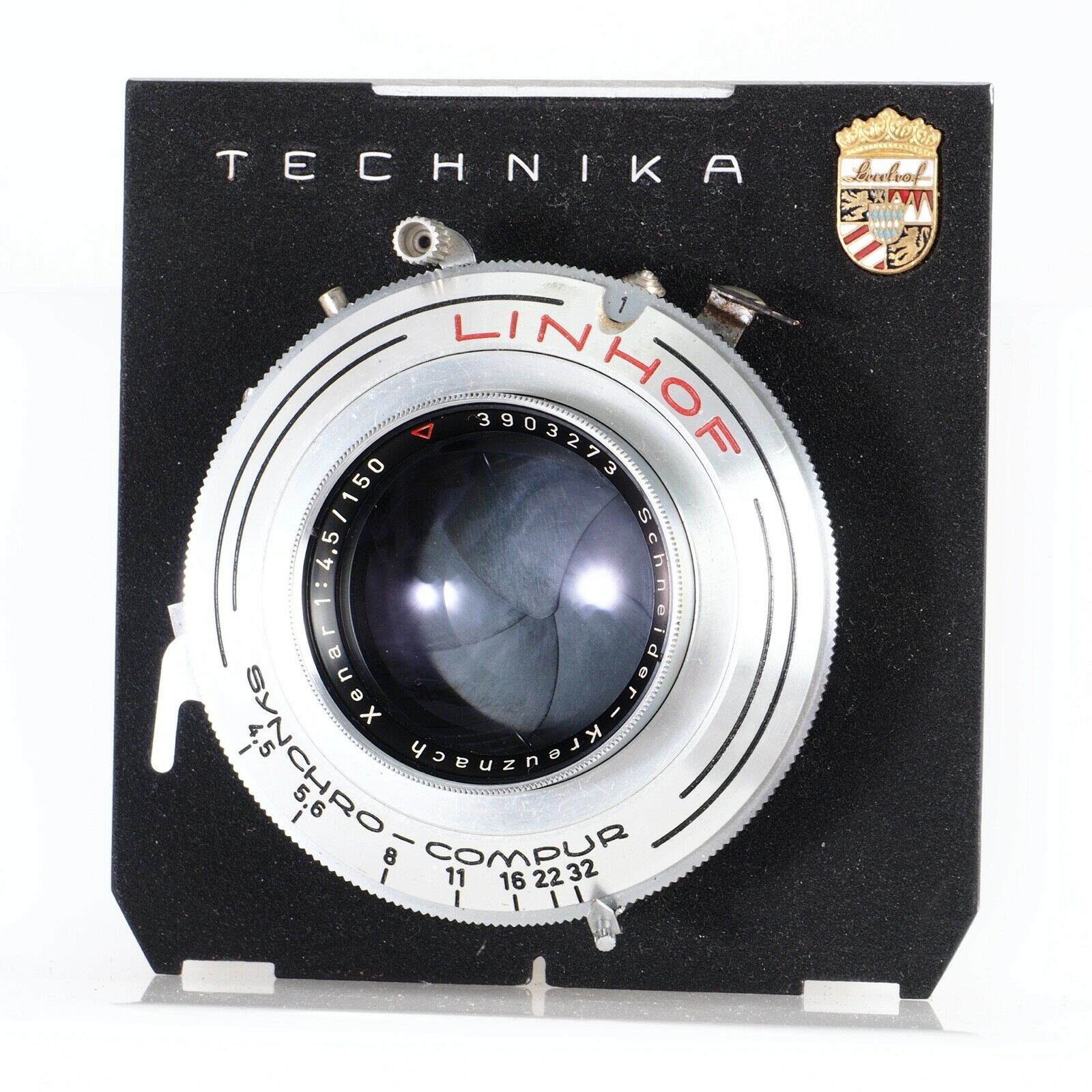 Found a very nice Schneider Kreuznach Xenar 150mm f/4.5. Elements are clear, no dust, no fungus and shutter was recently CLA'd. I'd been looking for one to mount on my new (to me), Linhof Technika III. It doesn't have a huge image circle (180mm), but I need it primarily for straight landscape shooting. The lens board is for a IV, or later, but I had a suitable III board.