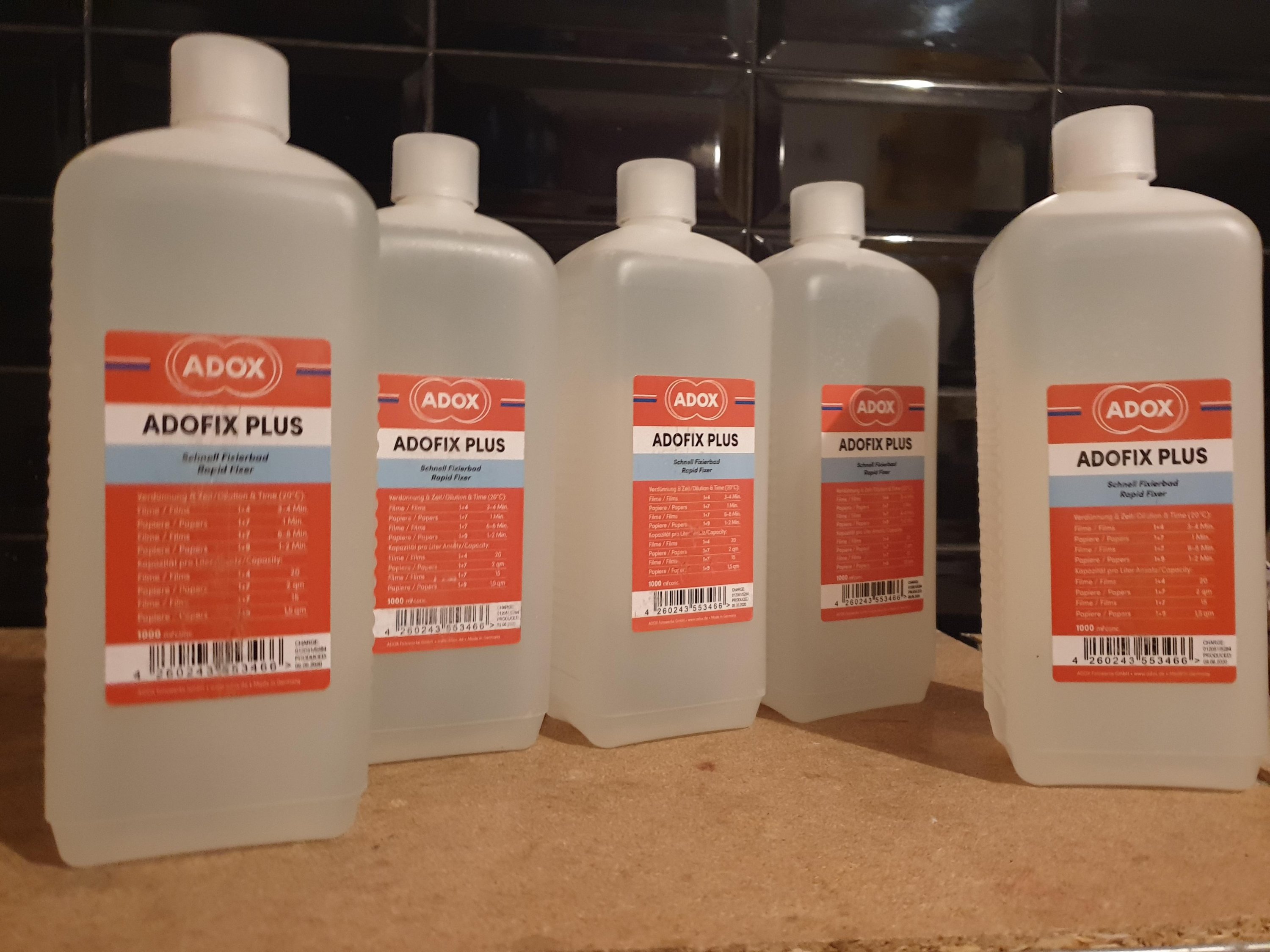 Always low on fixer, bottle of Rodinal last long, PQ Universal as well...so I got 5l of Adox rapid fixer.