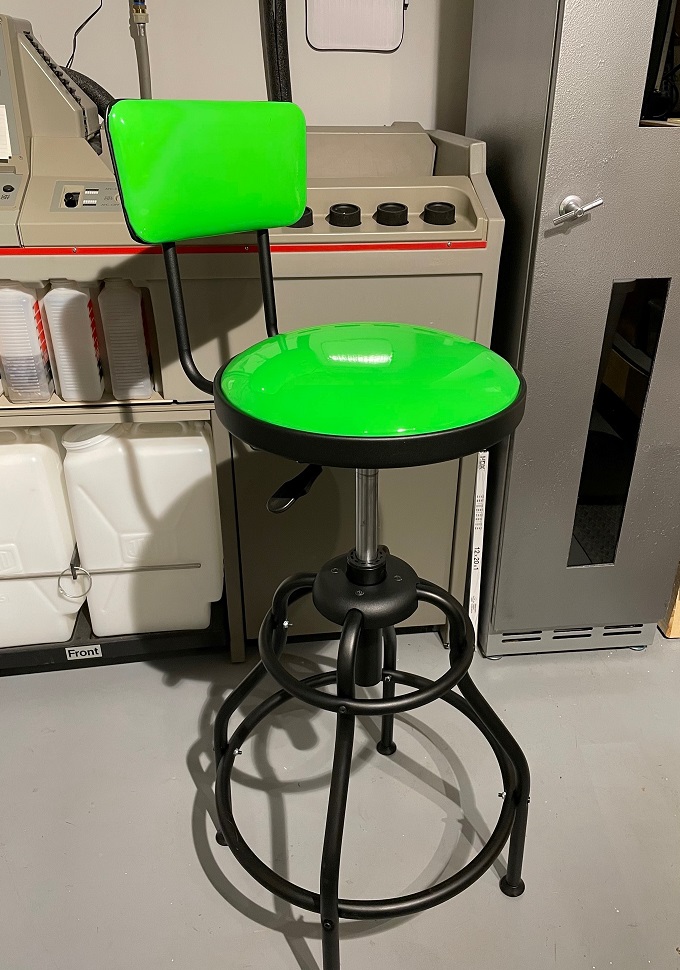 This for my aching feet! Harbor Freight shop stool with adjustable back. Seat padding is not the greatest, but it has a hydraulic cylinder like an office chair and a 275 lb. weight capacity.
