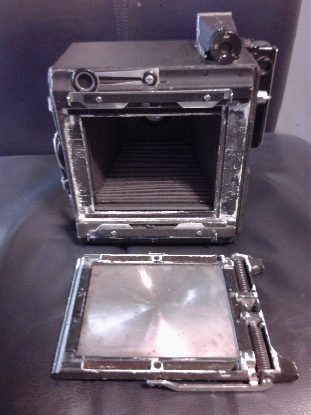 the speed graphic showed up yesterday. it's gonna take forever to restore. should keep me off ebay for awhile.