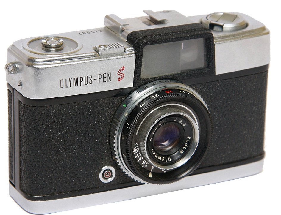 A minty Olympus Pen S half-frame in transit from Japan.