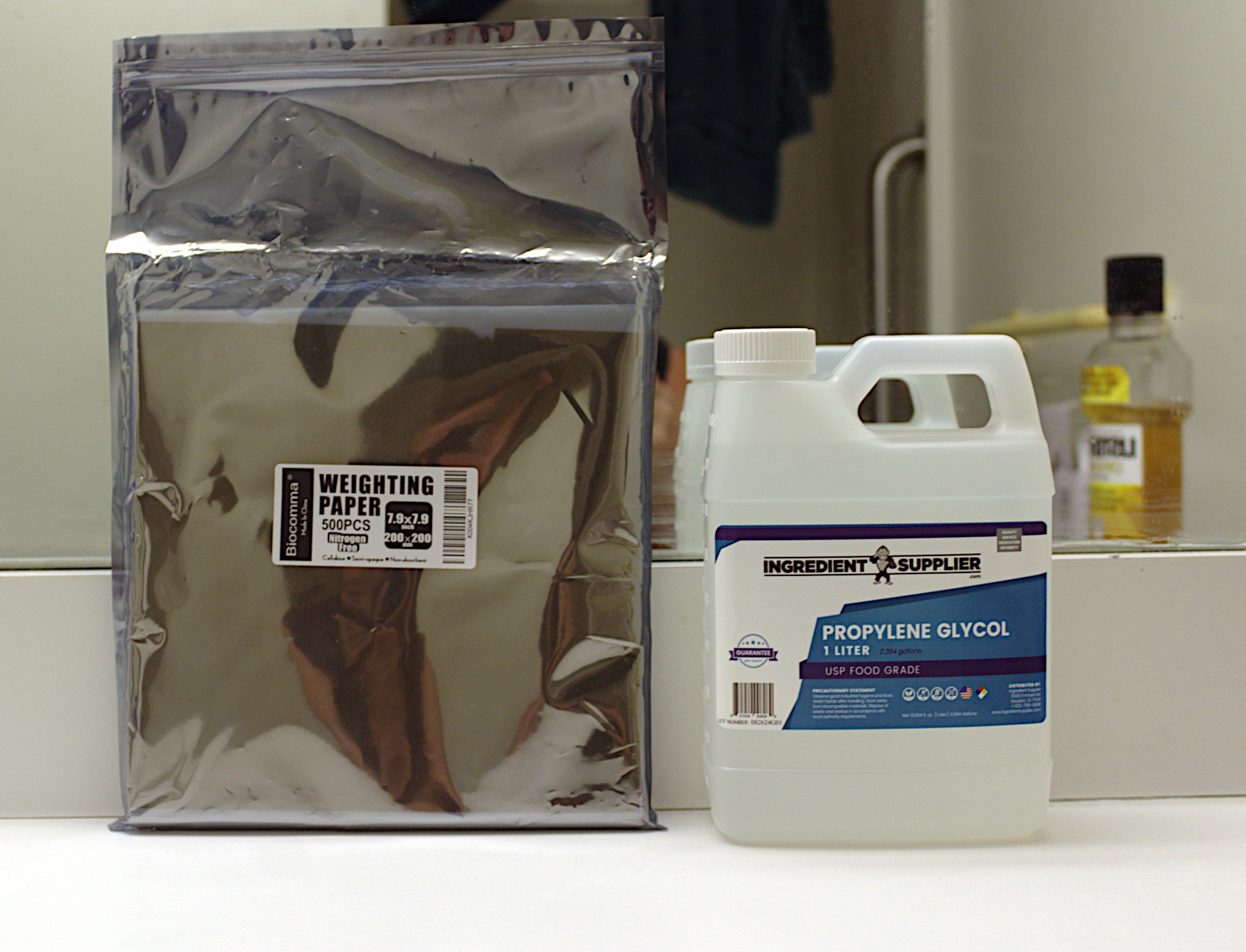 New gram scale, weighting papers and propylene glycol. This will be the first time working with raw phenidone. Will be mixing some up in PG.