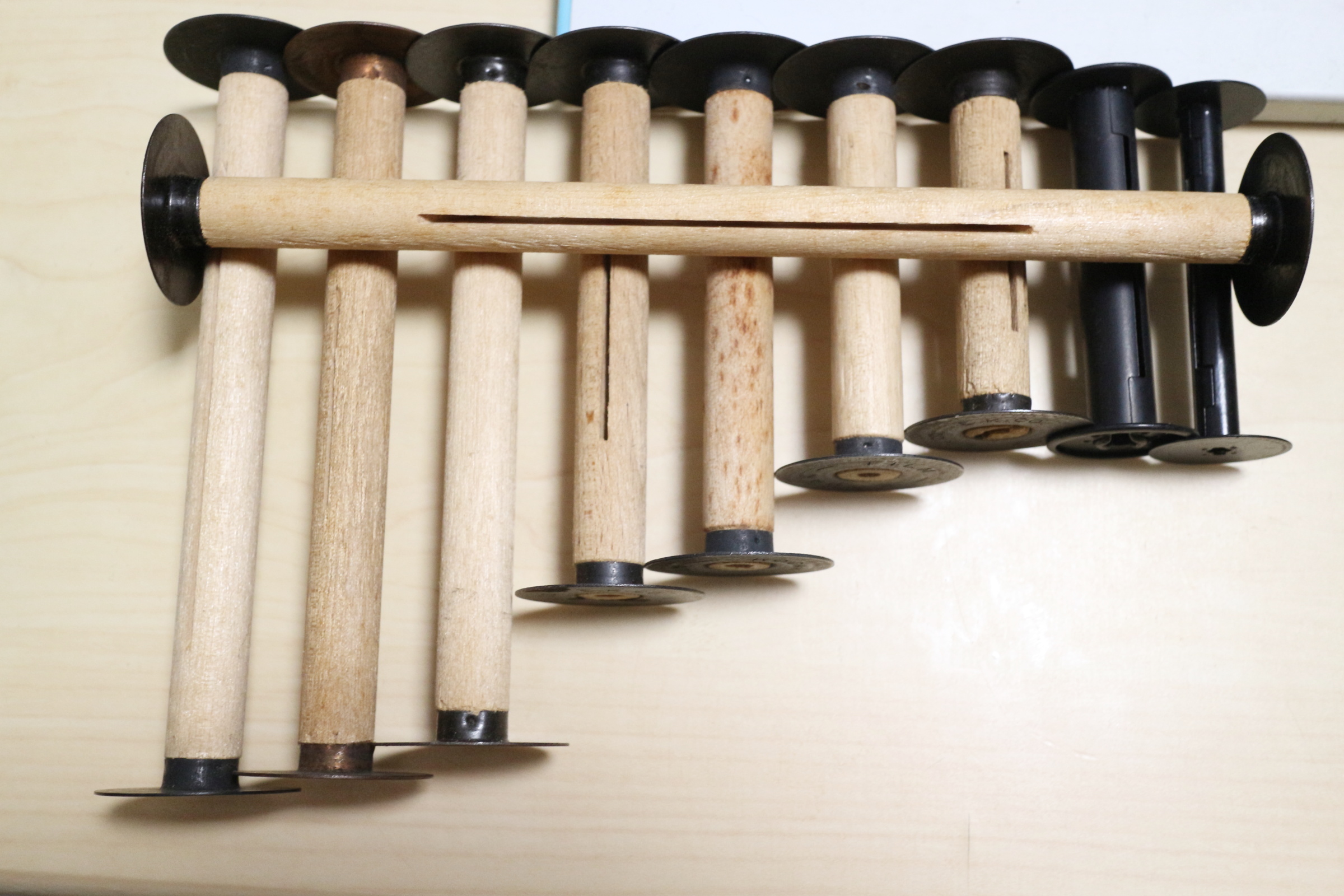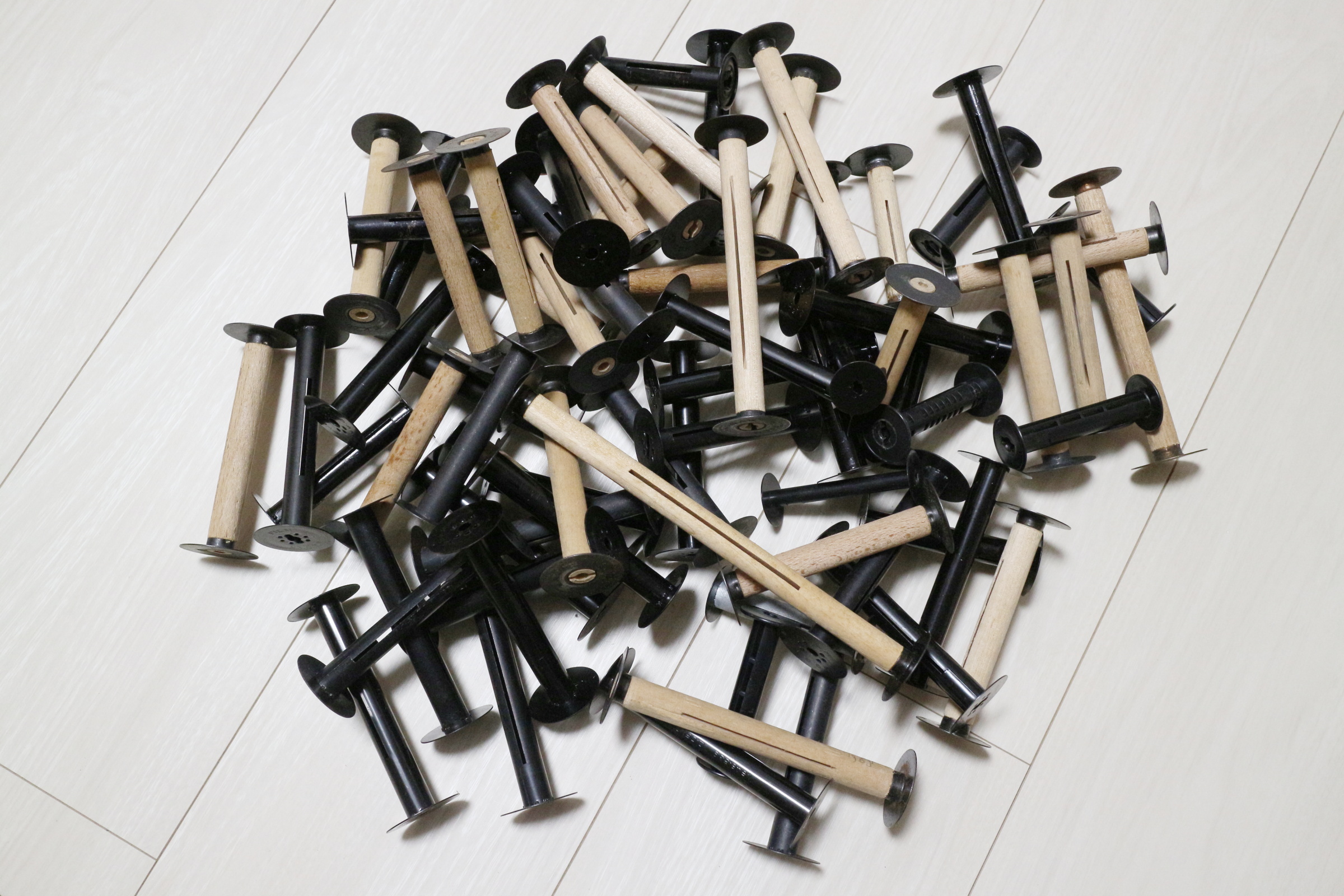 Lots of old film spools. Including shipping, it cost 13,000 yen. (about $90). I checked 10 different types, varying in shaft length, thickness, and flange diameter.
