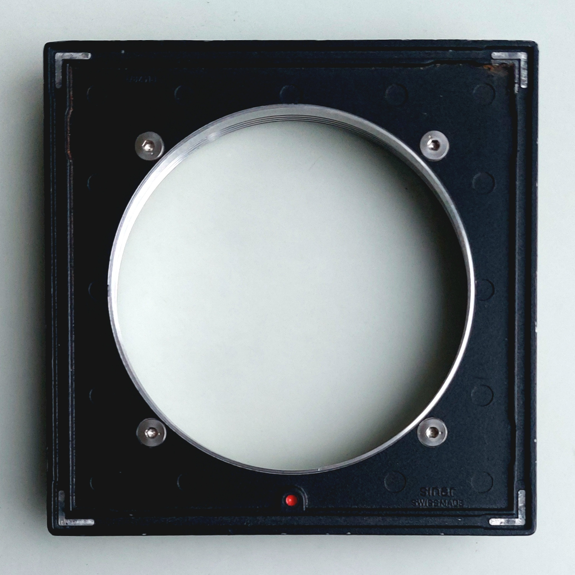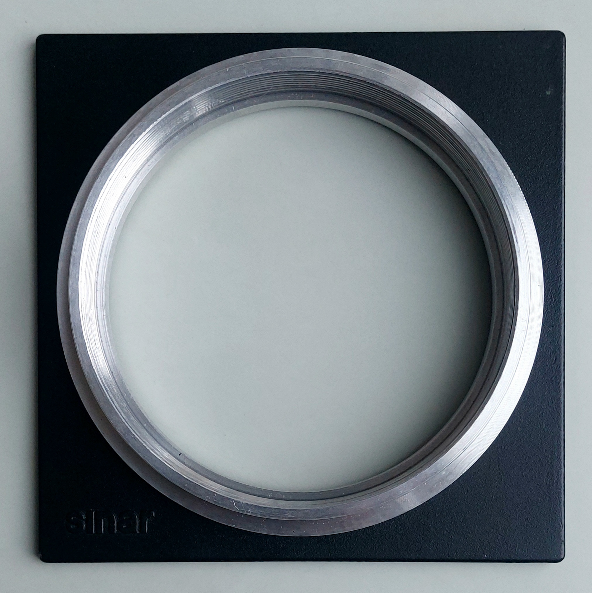 For my first assignment, he's made a threaded flange for my Steinheil Triplar f3.8 on a Sinar lensboard to be used in combination with a Sinar auto shutter.